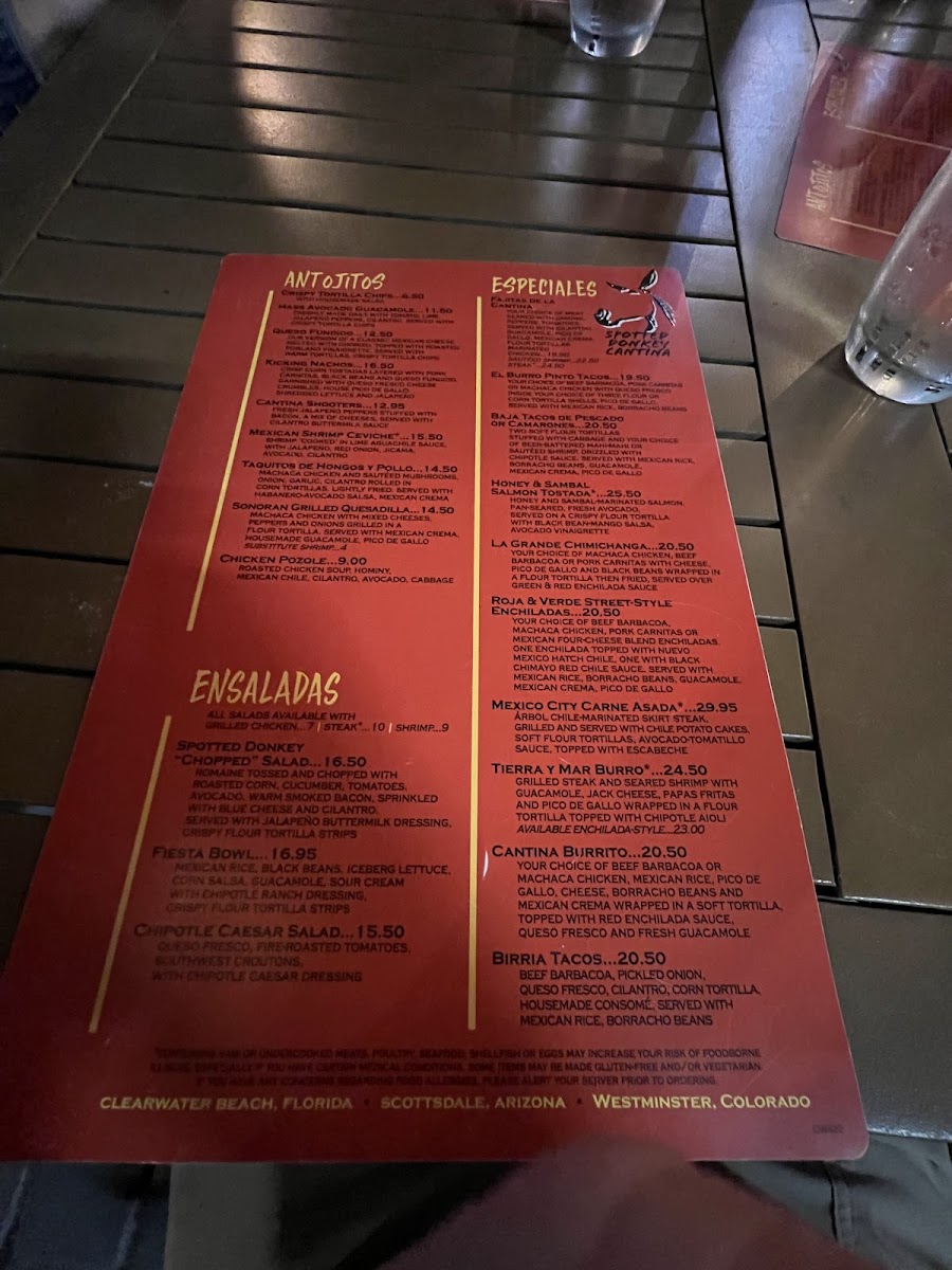 Your choice of beer-braised beef, machaca chicken, pork carnitas or mexican four cheese blend enchiladas. One enchilada topped with nuevo mexico hatch chile, one with black chimayo red chile sauce. Served with spanish rice, borracho beans, guacamole, mexican crema
